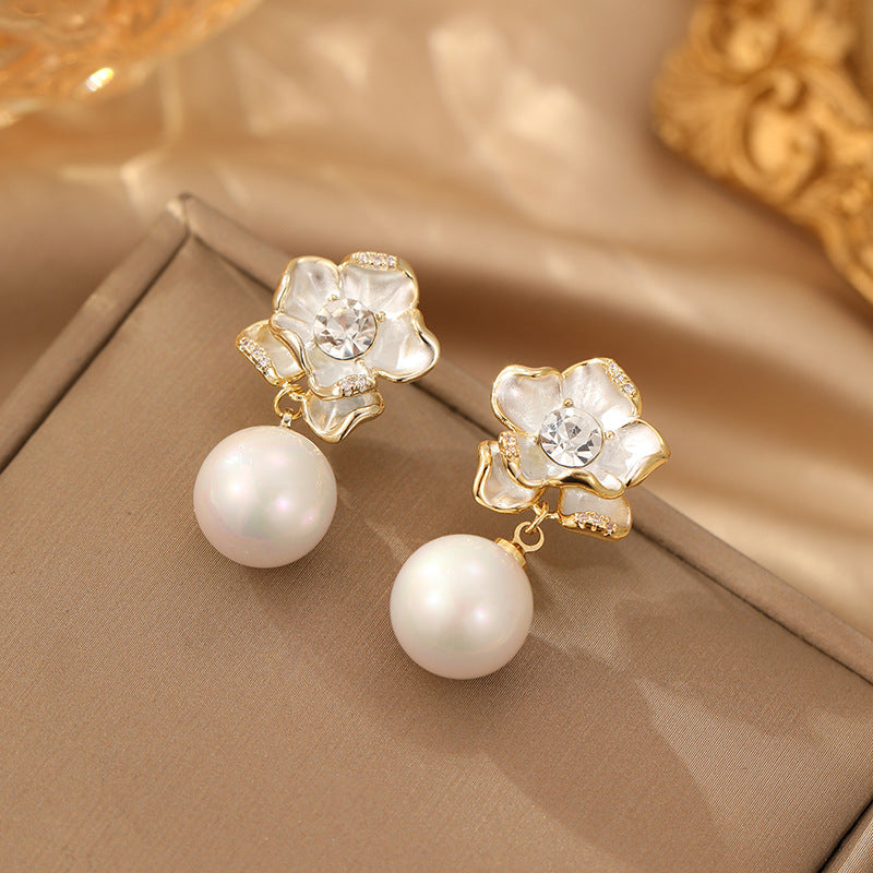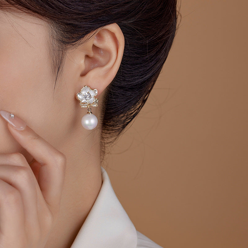 2025 White Camellia Pearl Earrings: Light Luxury, French Temperament, High-End