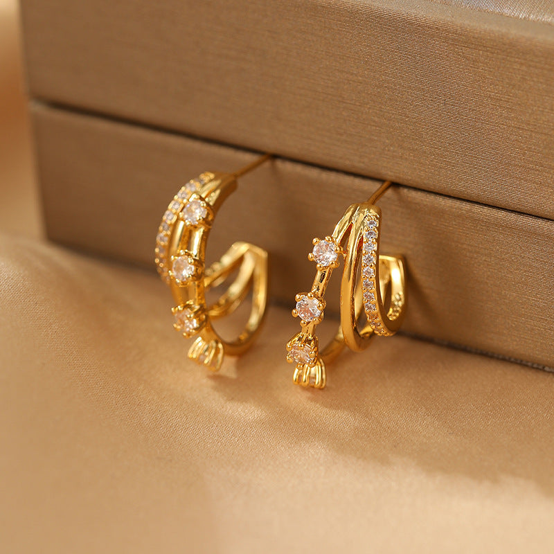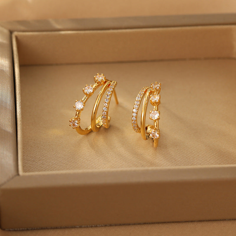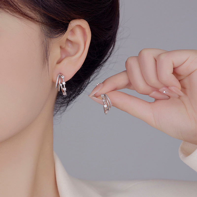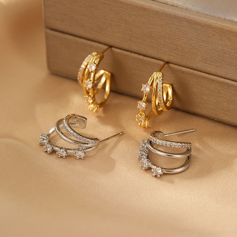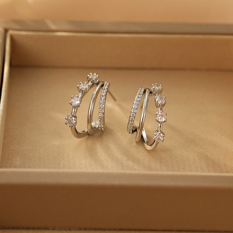 2025 Three-Layer Zircon Earrings: Silver Needle, 925 High-End, Wholesale