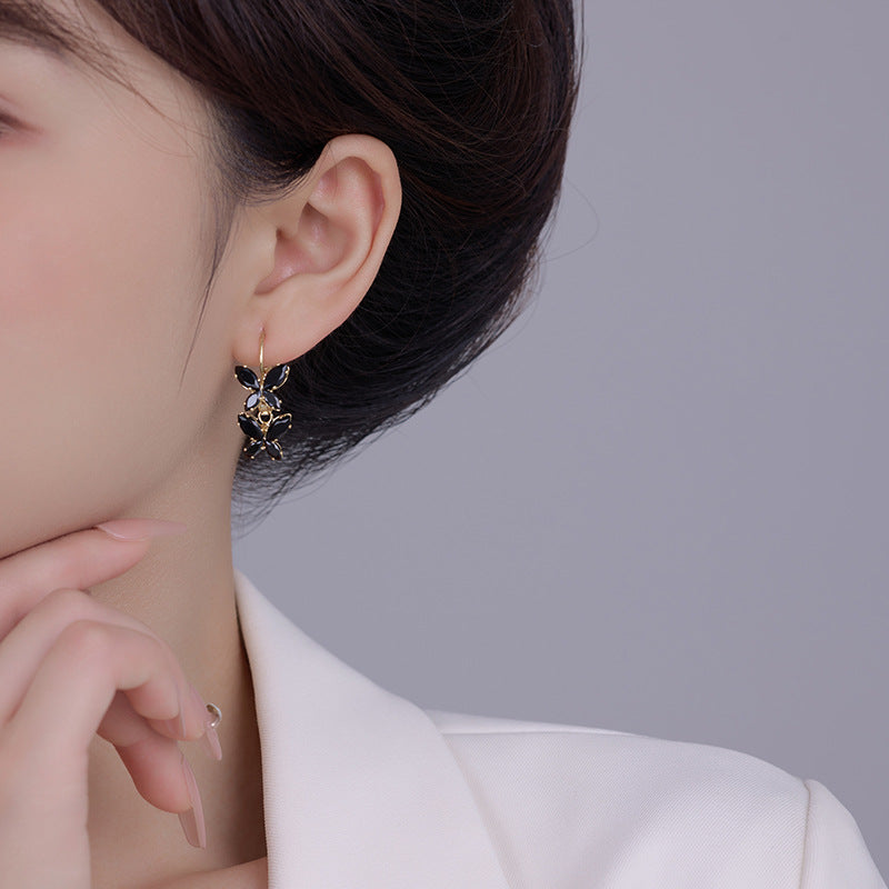 2024 Black Zircon Butterfly Ear Buttons: Fashion, Personality, High-End