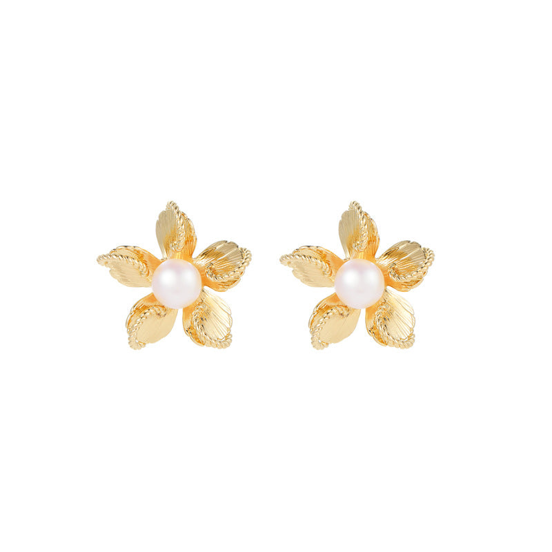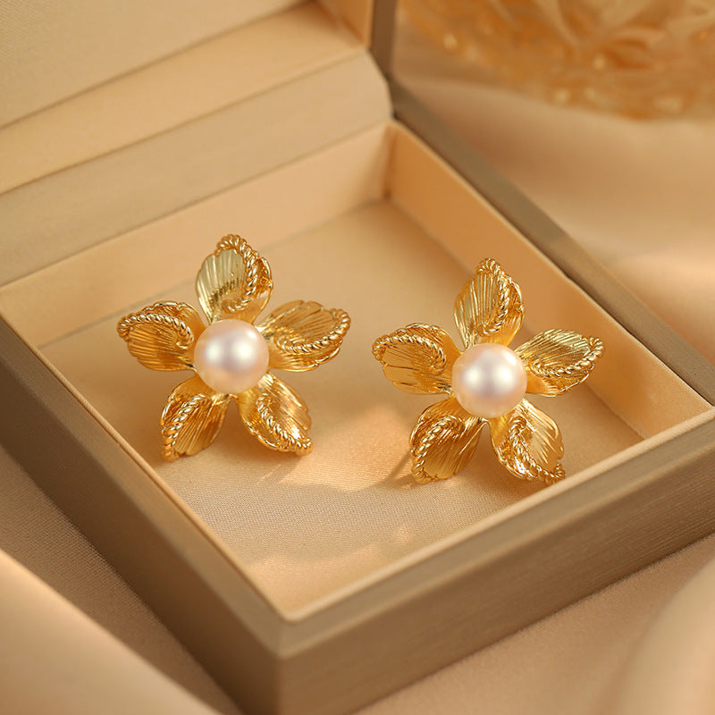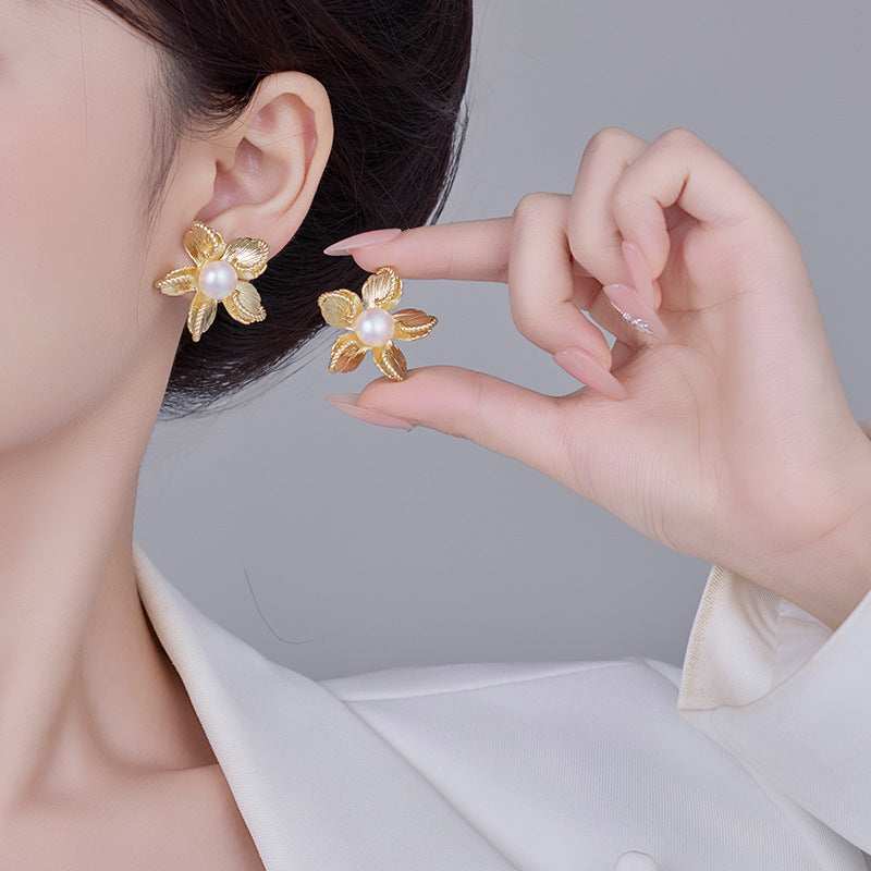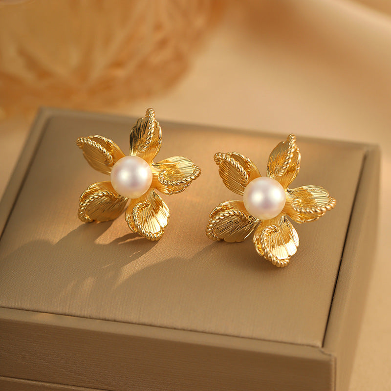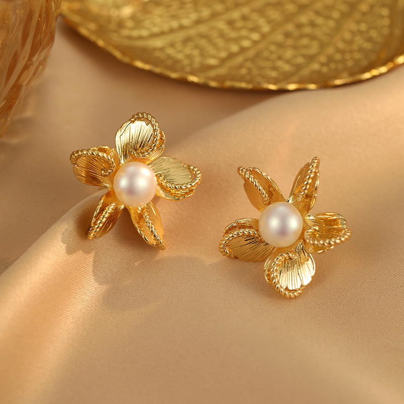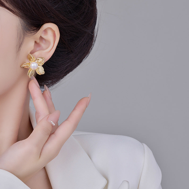2025 Irregular Metal Pearl Flower Earrings: Retro, 925 Silver Needle, Versatile