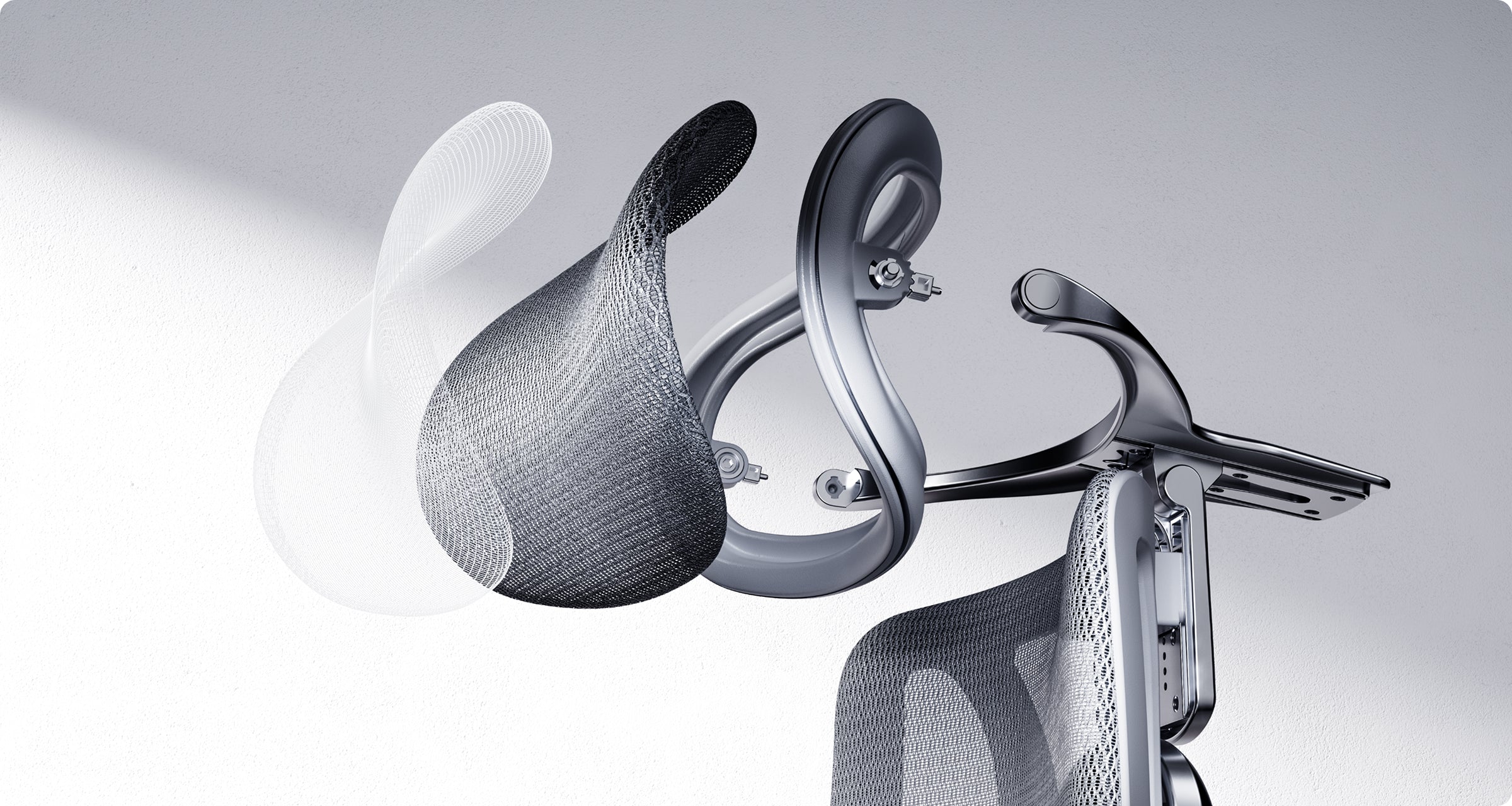 Dual-axis 70° rotation (headrest bracket + cushion) for dynamic neck contouring.