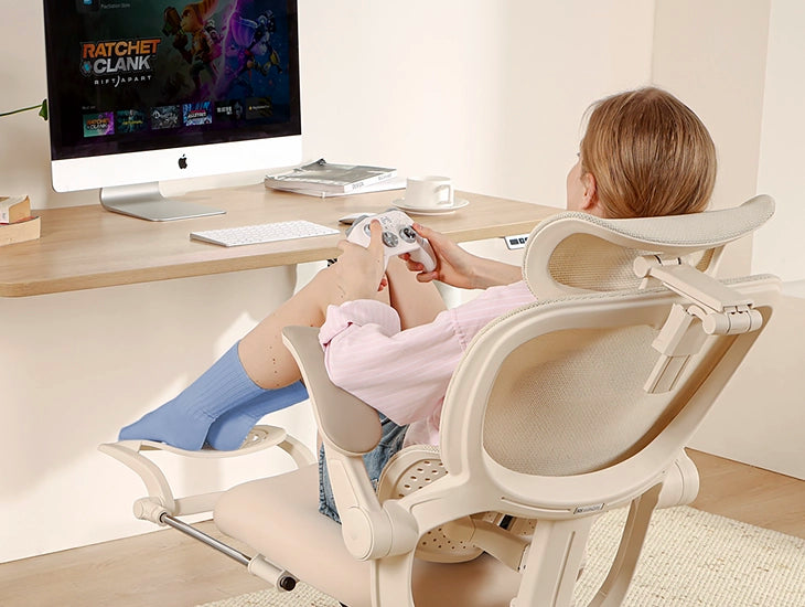 When your arms are free, your mind follows. Multi-directional armrests adjust up, down, rotate 120°, and flip back. Ergonomic arch design mirrors your natural arm positioning.
