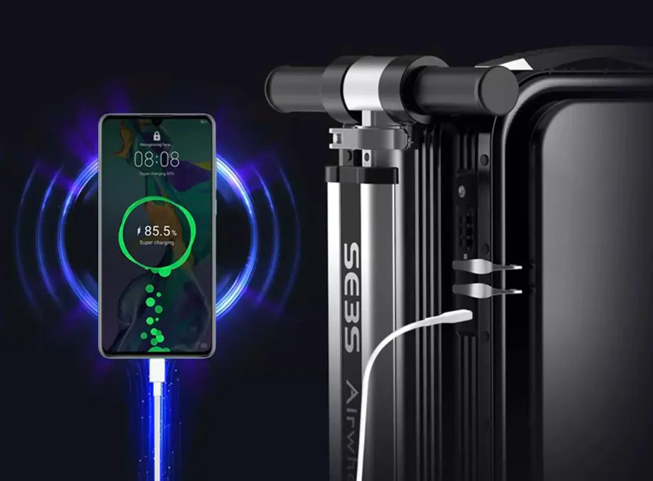 A standout feature of the Airwheel Smart Rideable Suitcase is its dual functionality as a power bank. With a capacity of 73.26 Wh (14,652 mAh), it can charge multiple electronic devices through two USB ports. Whether you're on the go or need to use the power bank separately, this feature keeps your gadgets powered up wherever you travel.