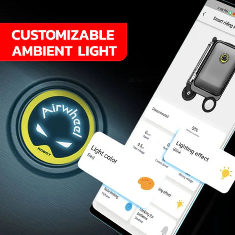 The Airwheel Smart Rideable Suitcase logo light can be customised in the app, letting you set the colour and lighting rhythm to suit your style.
