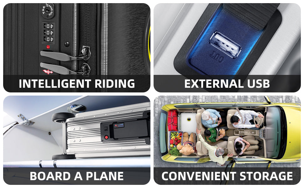 The Airwheel Smart Rideable Suitcase features a 73.26 Wh removable lithium battery, certified to UN38.3 standards and compliant with UN's 100 Wh power limits. Enjoy peace of mind with a high-quality, travel-friendly battery in your Airwheel luggage.*