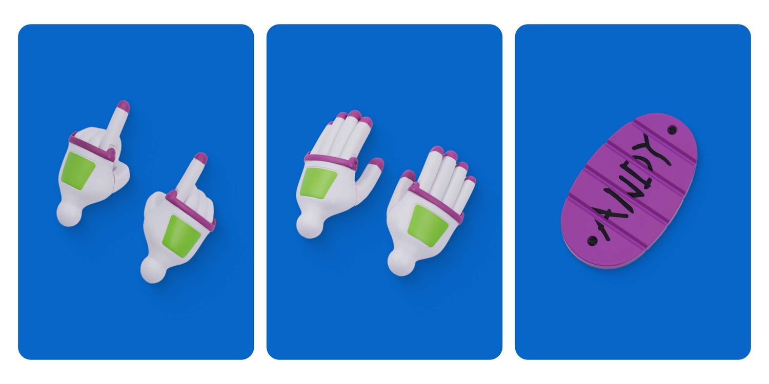 Comes with a pre-installed footplate featuring Andy's iconic signature, plus an additional blank footplate for you to add your own signature, making Buzz uniquely yours. With interchangeable hands, recreate Buzz’s different heroic poses, tailored to your imagination.