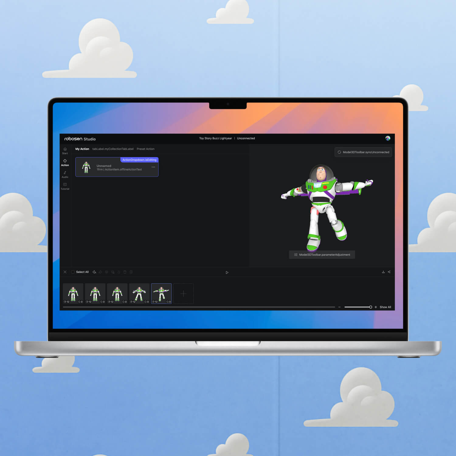Dive into Robosen Studio for full customization. Use an expansive library of actions and sounds to script your own Buzz adventures, exploring complex choreography and unique interactions.